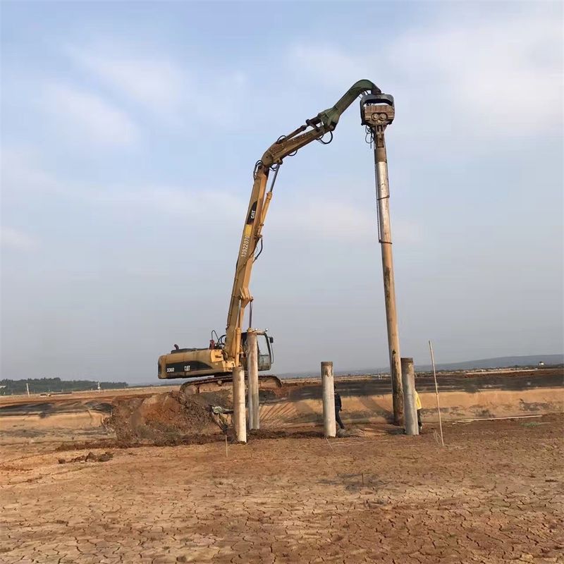 Der Bagger-Pfeil-Antriebsarm ist speziell für die Antriebs- und Ziehfunktion des Blechstapels ausgelegt, der sich von dem Standard-Bum-Arm des Baggers unterscheidet.mit einem kurzen Arm. Dann kann mit dem kleinen Arm ein Pfahlhammer-Biegearm verbunden werden, um die Pfahlheben- und Pressenoperationen besser zu steuern